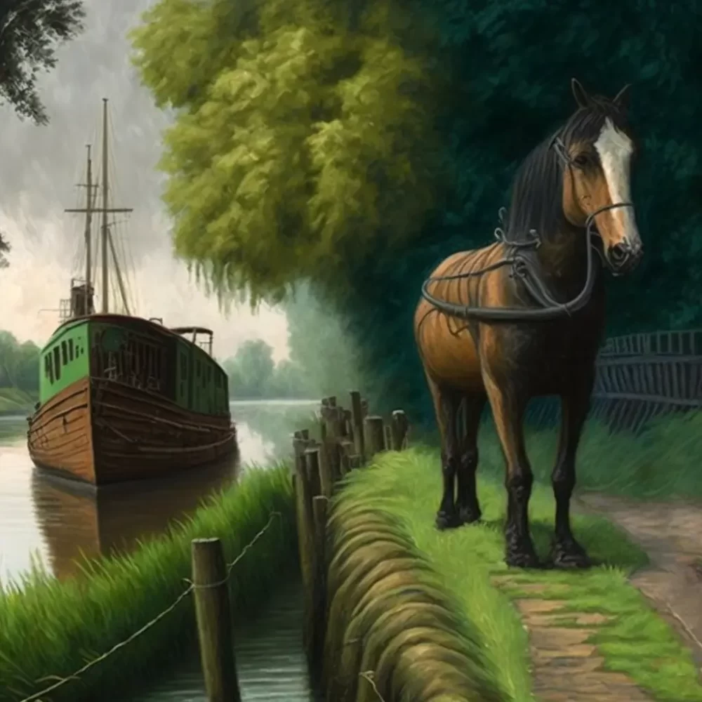 Round a bend in the canal came plodding a solitary horse, stooping forward as if in anxious thought. From rope traces attached to his collar stretched a long line, taut, but dipping with his stride, the further part of it dripping pearly drops. Toad let the horse pass, and stood waiting for what the fates were sending him.